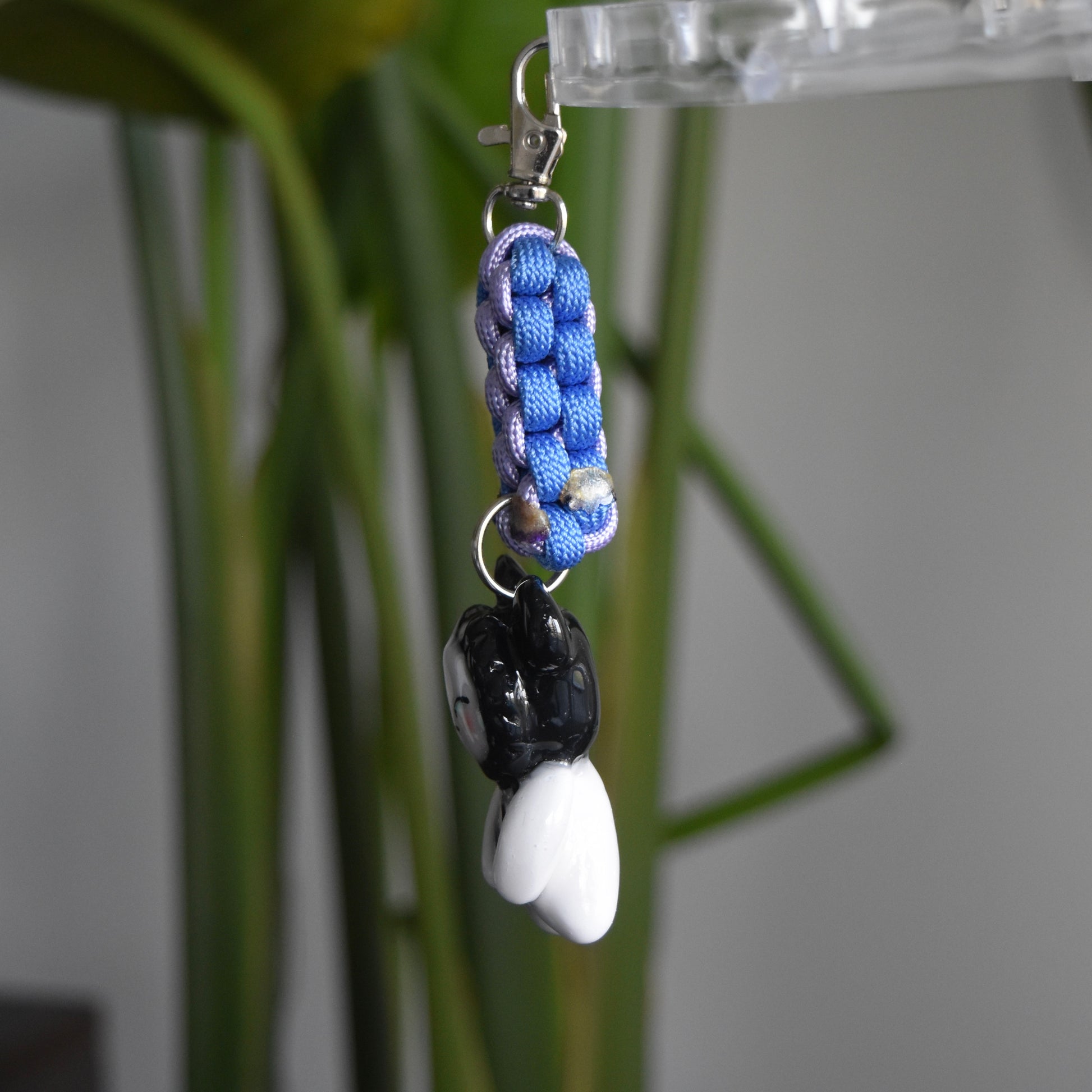 Handmade sculpted charm using polymer clay and varnished using UV resin for shine and durability. Rope also hand knotted.